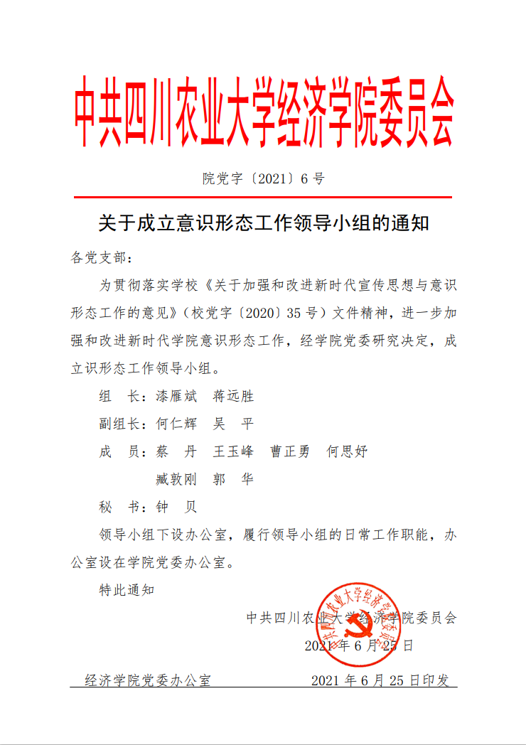 院党字〔2021〕6号——关于成立意识形态工作领导小组的通知