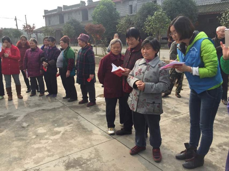 第一次见到崔鹏鹏和褚璐曼两位师姐的时候,是在2016年11月20日,当时她们正在给雅安市名山区万古镇红草村村民宣讲茶产业与农家乐经济融合的话题,同时也在给开餐饮农户签发诚信经营承诺书。她们耐心的解答每个村民提出的问题,并就诚信相关条款与产业发展做了相关指导,等忙完才开始接受我的采访。