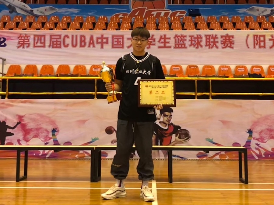 曹子昆身上的这股韧劲同样体现在篮球方面。在校期间,他多次参加了CUBA阳光组和学校“冠军杯”篮球比赛。经过艰苦训练,去年他和篮球队兄弟们联手为学校捧起了中国大学生篮球联赛四川赛区的亚军奖杯。