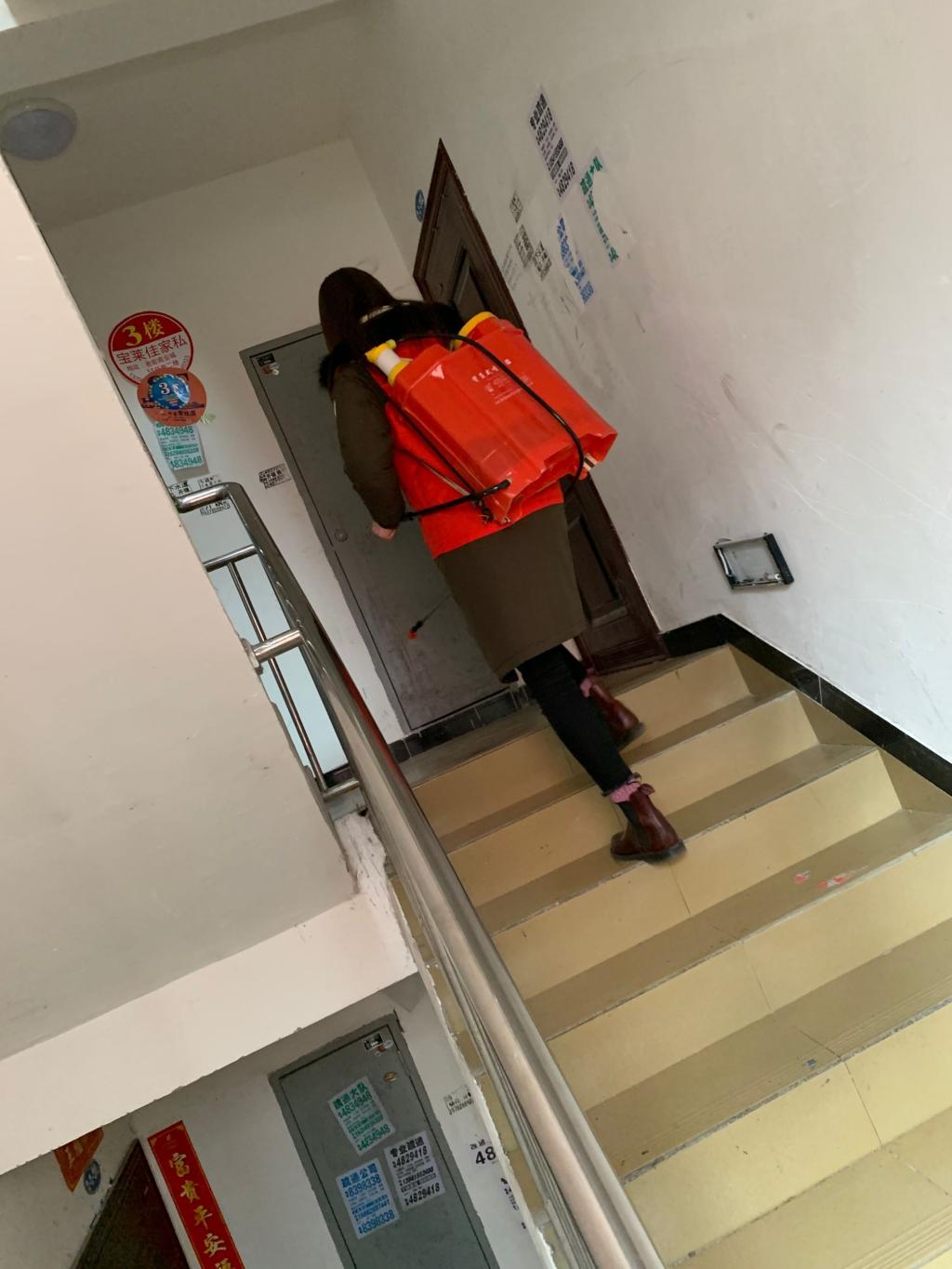 从2月2日到2月23日,三个星期每天6小时从未间断。消毒的工作要求是每天每栋每户门前必须消两遍毒,她每天背着重达10kg的消毒器和另一名同伴一起负责五栋楼,在没有电梯的6楼房屋里爬上爬下,即使是寒冬她也热得汗流浃背。团队里的其他人看她是个小姑娘,想给她分配一个轻松点的工作。但蒋怡萱并没有同意,她认为,既然是出来做志愿工作的,就应该拿出所有力气,尽全力去做,她完全能完成消毒这项工作,而且其他人也做着相当劳累的工作,不应该再去给别人添加负担。