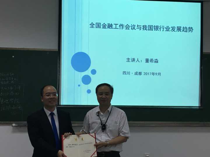 9月8日下午,恒丰银行研究院执行院长、中国人民大学重阳金融研究院客座研究员、新华社瞭望智库特约研究员董希淼受太阳集团tyc9728的邀请,在4教A103为师生做了题为《全国金融工作会议与我国银行业发展趋势》的学术报告。