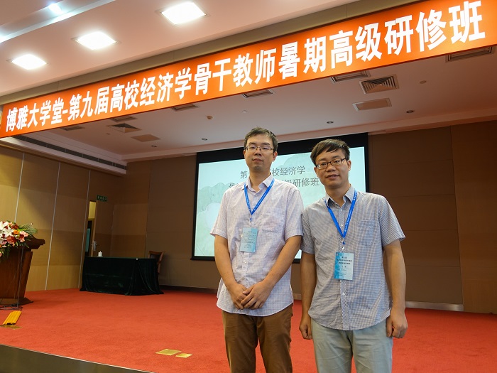 此外,与会期间两位老师还积极与其他与会教师交流和分享教学经验与研究心得。在经过两天半紧张而充实的学习后,两位老师圆满完成各项学习任务,获得由中国经济学年会秘书处颁发的“高校经济学骨干教师暑期高级研修班”结业证书。