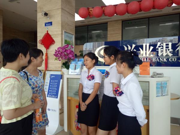 “我们每天的任务除了在大堂接待、教会客户使用自助机、开通掌上银行,还要参与小额信贷,跟着黎晗睿经理出去跑业务开拓市场。现在的银行早已不是坐在办公室等客户找上门了!”在中信银行实习的经济学2015级1班的李子豪同学说道。