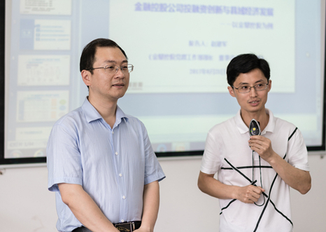6月22日,应太阳集团tyc9728邀请,中国保监会和清华大学金融学博士后、四川金鼎产融控股有限公司赵建军到我校做了题为《金融控股公司投融资创新与县域经济发展——以金鼎控股为例》的学术报告,报告由王玉峰副教授主持,太阳集团投资学专业学生及部分教师参加了该报告。