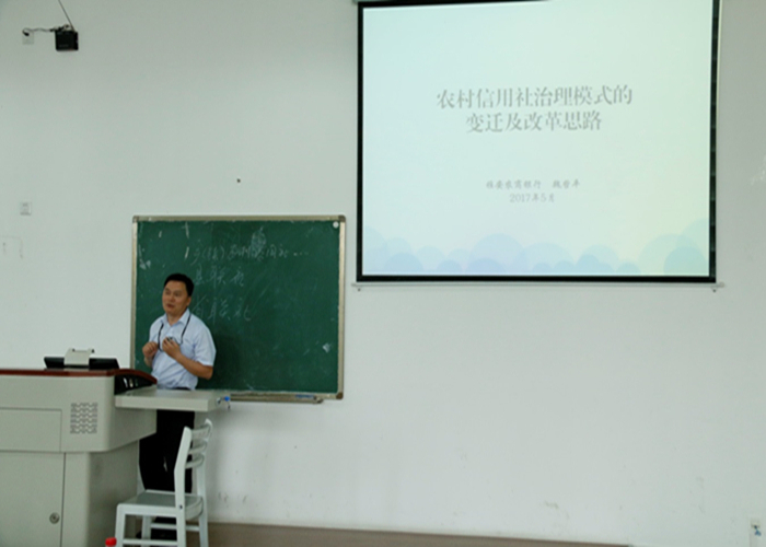 魏哲平以渊博的理论素养和丰富的金融从业经验,给师生们呈现了一场精彩的学术报告。首先梳理了罗虚代尔合作原则、国外农村信用合作的起源与中国农村信用合作的历史,然后系统分析了农村信用社治理体制,特别是2003年省级联社普遍建立后农村信用社治理机制及其变迁的逻辑,并结合今年中央一号文件对农村信用社省级联社改革和农村商业银行的改革做出了展望。报告重点结合雅安农村商业银行实际,对农村信用社改制的“雅安模式”进行了梳理,对同学们关心的农信系统就业问题做了仔细分析,对新常态下农村信用社未来经营的理念、战略做出了展望。魏哲平对农信社和农商银行立足县域服务三农和小微中屹立于金融市场激烈竞争充满信心。