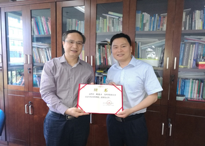 报告会结束后,院长蒋远胜教授为魏哲平博士颁发了太阳集团tyc9728客座教授聘书。