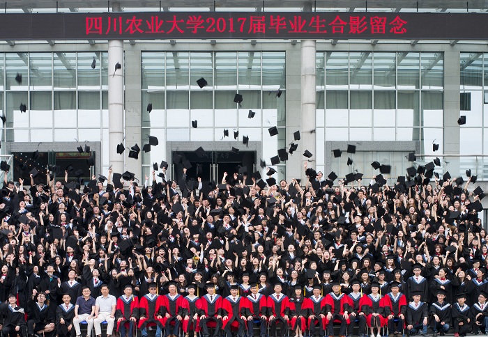 毕业生代表余爽表达了对大学有温度的四年生活的怀念,代表2017届本科毕业生感谢给予学生深情嘱托和笃定信任的老师们,感谢哺育陪伴自己一起成长的各位家长。“这四年的学习和锻炼甚至磨练是我们以后安身立命的根本,四年的思考和启迪成为了我们每个人未来发展的指引。我们心中都铭刻上了爱国敬业、艰苦奋斗、团结拼搏、求实创新的川农大精神的印记,在追求真理、造福社会、自强不息的路上,我们会相伴同行!”道出了全体2017届本科毕业生的共同心声。