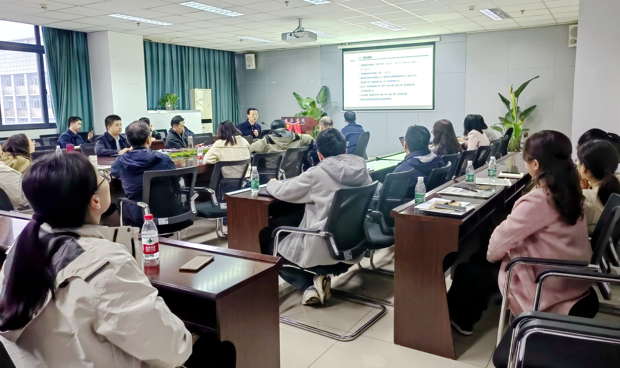 杜俊波副处长肯定了我院在国家基金申报工作中付出的努力和取得的成绩。他指出,高质量科研工作以及高质量的科研成果在学院国家基金的申报工作中发挥了重要作用。他勉励全体科研人员认真准备、积极申报,紧跟时代研究前沿进行选题,实现突破性的发展,推动学校、学院国家基金申报工作迈进新阶段。