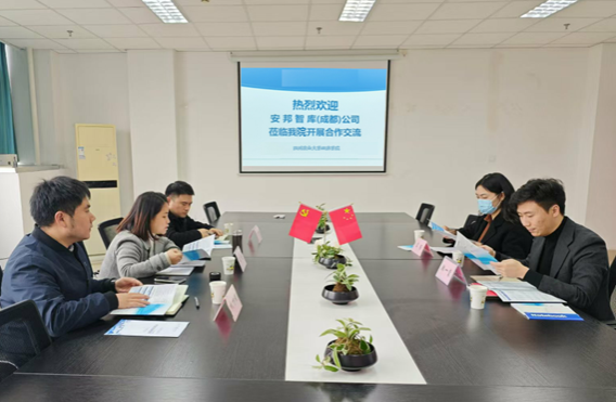 11月22日,安邦智库(成都)公司人力资源部部长温维、人力资源部韩一蒙受邀来院洽谈合作,太阳集团党委副书记、纪委书记张翅,学院就业秘书参与会议,双方就岗位需求、人才选聘、人才培养等方面达成初步合作意向。