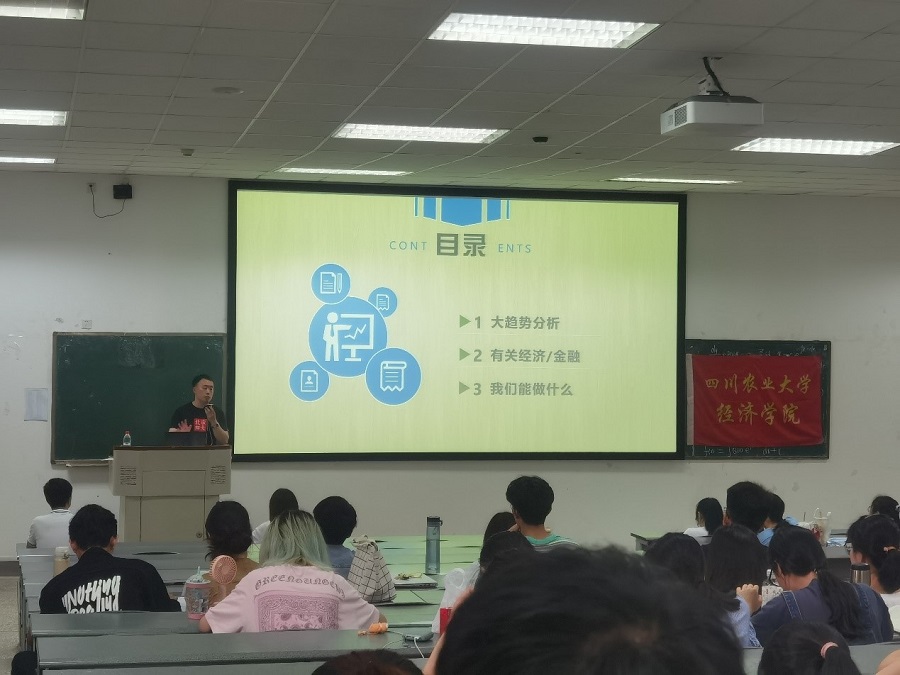 讲座开始由成江老师提出三个问题 “什么是人工智能?” “人工智能的知识框架?” “人工智能的应用如何分类?”,来激发同学们的求知欲望,在分别听取了同学们的不同意见后,成老师通过其专业的知识素养采用诙谐的方式逐个给同学们进行详细讲解,如通过同学们感兴趣的“p图技术”来给同学讲解相关人工智能技术,从而极大地提高了同学们对人工智能的兴趣和关注度。其次,毕业于北京师范大学经济与工商管理学院经济学实验班、现北师大系统科学学院在读硕士吕老师针对我们经管与人工智能结合的发展前景进行了专业的讲解。作为“过来人”,吕老师以亲切的口吻对我们如今的市场就业发展大趋势进行了分析,其中包括对经济、金融专业结合十四五规划纲要所提出的未来发展目标,吕老师针对性的给同学们带来了详细的分析与建议。同时,作为一个“学长”,吕老师给在座同学分享了许多重要的学习方法和学习工具以及相关软件。活动结束后,在座同学们仍和老师一起共建群聊,继续进行相关问题的探索和分享。