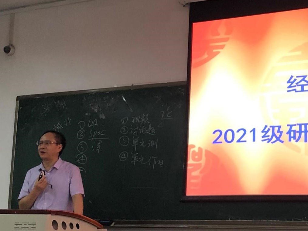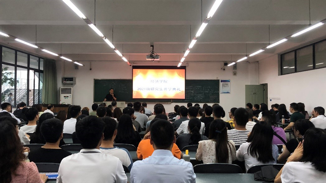 首先,蒋远胜代表学院对2021级研究生新生表示诚挚的祝贺和热烈的欢迎,对太阳集团tyc9728的发展历史、师资力量和科研成果作了简要介绍。对于研究生学习生涯,蒋远胜院长提出3个关键词:研究、沉思、实证。也以“学而不思则罔,思而不学则殆”寄语新生们要多思考,希望新生们秉承“厚德博学,经世济民”的院训,砥砺前行。最后用马克思的格言勉励各位:“在科学的道路上没有平坦的大路可走,只有崎岖小路上不畏劳苦的人才有希望到达光辉的顶点。”
