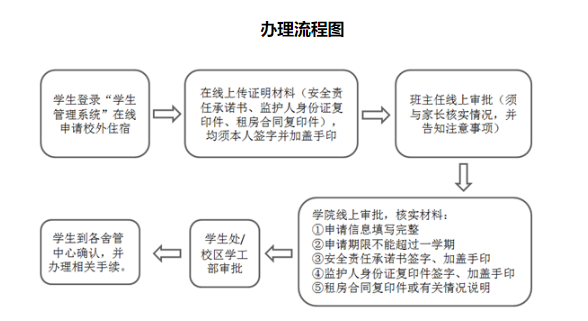 请有特殊情况需要申请在外住宿的同学,于10月10日前,登录“学生管理系统”在线填写申请校外住宿后,联系班主任登录学工系统,线上审核《太阳集团tyc9728学生在外住宿申请表》等材料。