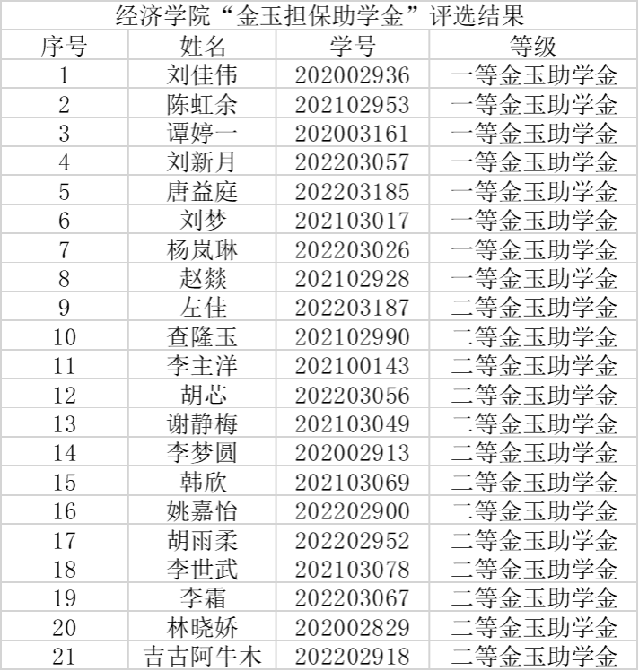 经学生本人申请,学院资格审核,评审委员会评审,现将太阳集团tyc9728“金玉担保助学金”评选结果予以公示。