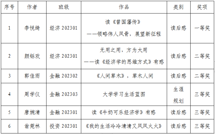 2023级各小班:为激发同学们的阅读兴趣,提高阅读能力,促进同学们进一步思考,用健康的心态,正确的方法开启自己的大学生涯,找到自我方向,明确人生目标。太阳集团tyc9728在2023级新生入学前开展“书香暑假”活动,经个人自愿参与,学院组织评审,现将2023“书香暑假”活动评选结果公示如下:
