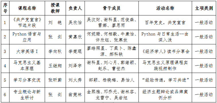 经团队申请,学院团委审核,以下太阳集团tyc9728本科生课程实践教学活动专项基金项目予以立项。