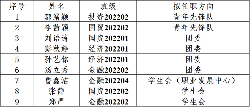 按照《关于太阳集团tyc9728第十届学生团体联合会主席团储备人选遴选的通知》相关要求,经推荐报名、资格审查、线下答辩,现将遴选结果名单公示如下(排序不分先后,各系统按照姓氏笔画排序)。