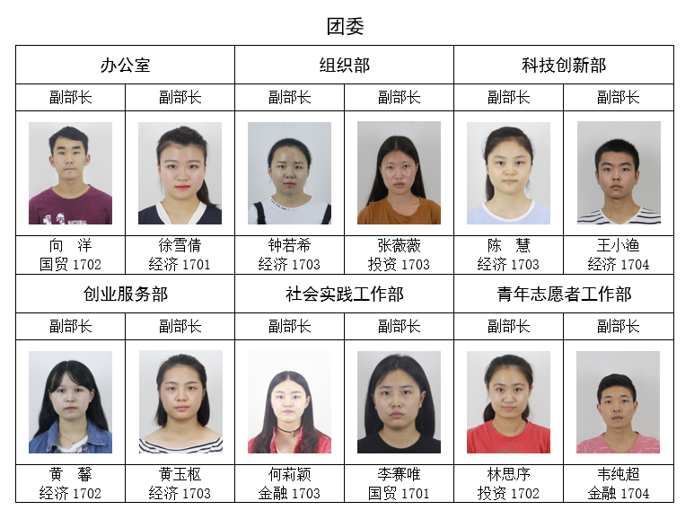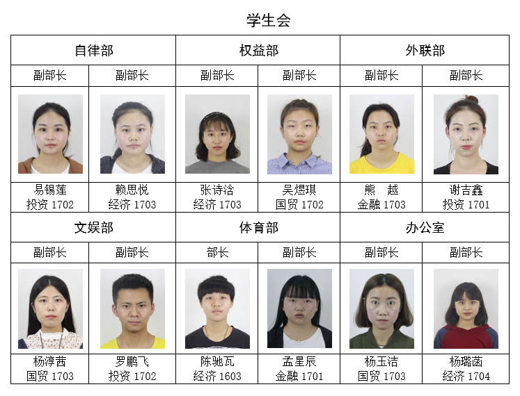 经个人申请,学院资格审查,面试答辩,拟任以下同学为太阳集团第四届学生团体联合会主要学生干部,试用期3个月,现予公示如下: