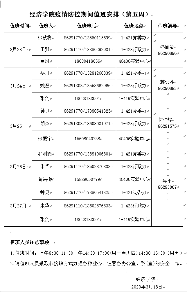 太阳集团tyc9728疫情防控期间值班安排(第五周)