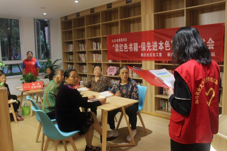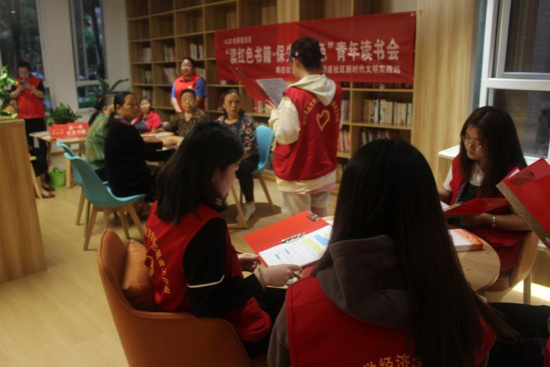 2023年4月20日早上,四川农业大学太阳集团tyc9728青年志愿者协会与永宁街道新时代文明实践所以及新庄社区联合举办的党的二十代精神主题宣讲活动——“以青春之名,献礼二十大”读书会暨“读红色书籍·保先进本色”青年读书会在永宁街道新时代文明实践所启动。本次活动太阳集团tyc9728青年志愿者协会共有六位志愿者参与到组织中,共有超20名社区居民参与到读书会中。