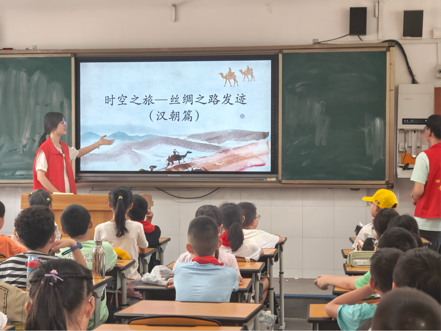 9月20日下午,学院“寻耕乐读”志愿服务团队带领小朋友们开启新学期的首场穿越时空旅行。伴随着轰隆的雷声,志愿老师与小朋友们一起回到了那个传奇的时代——汉朝,一同探索丝绸之路的发迹,去解密贸易路上的神奇故事。