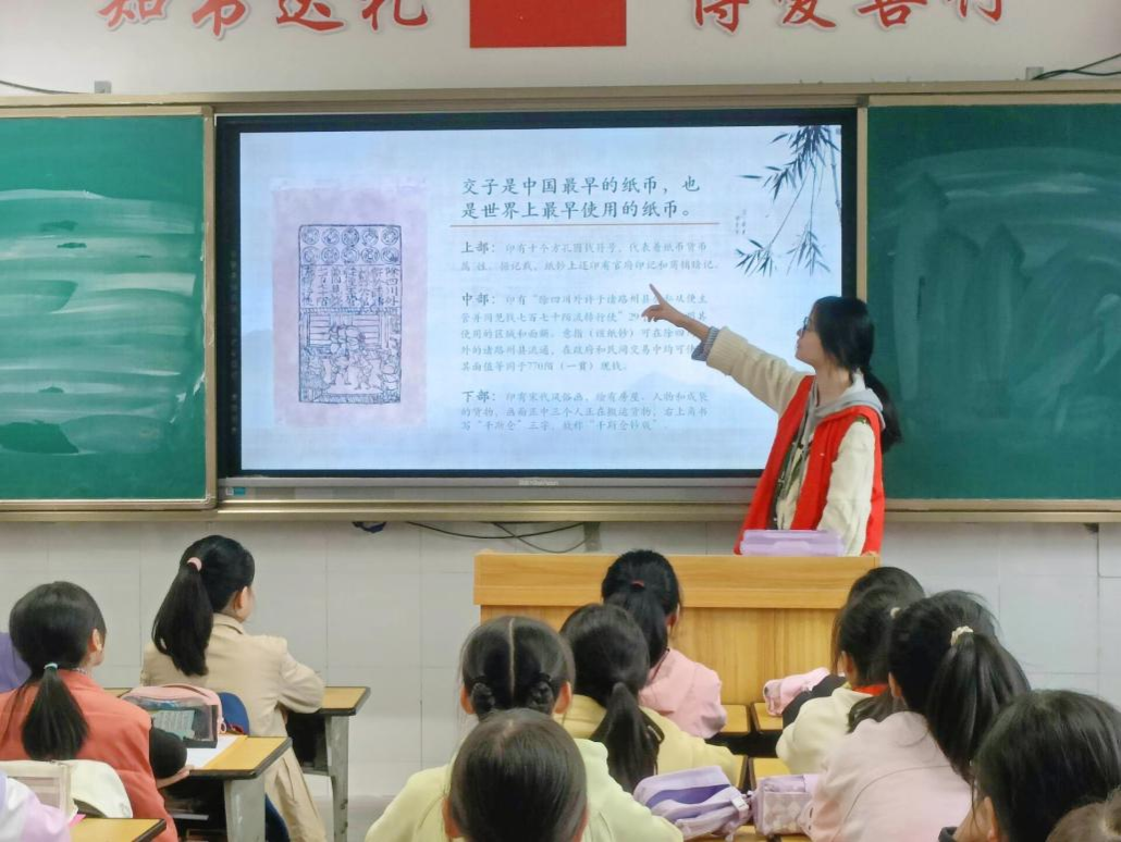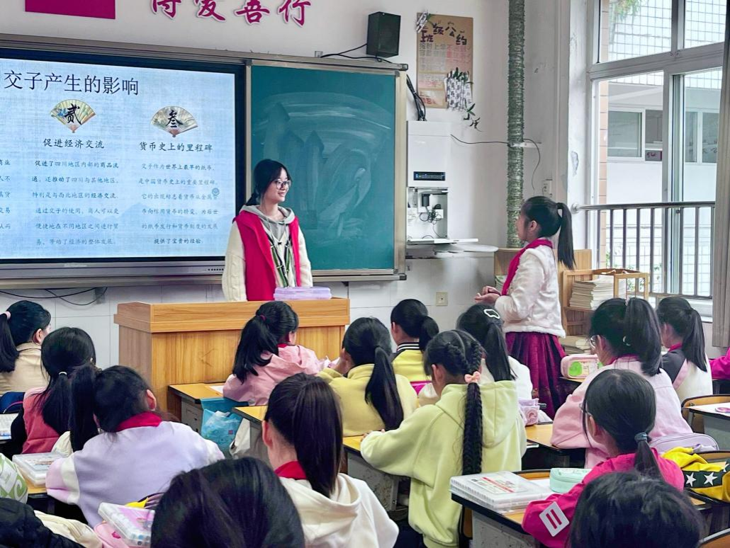 10月25日下午,太阳集团tyc9728团委志工部的同学们去往温江区东大街第一小学,带领孩子们开启了一场历史与现实相交织的旅途,来到宋朝,与苏轼“对话”,揭开纸币“交子”神秘的面纱。