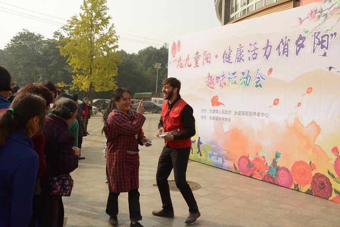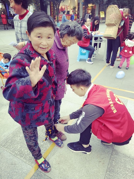 在温江区永盛镇养老院举办的“九九重阳,健康活力俏夕阳”趣味运动会不仅吸引了热爱运动和广场舞的老年人们,还吸引了我校巴基斯坦的两位留学生。27日上午,Hssain和Mansoor早早来到集合点,穿上太阳集团tyc9728志愿者红马甲,参加了志愿服务行为规则、重阳节习俗以及如何与中国老人相处等培训。活动前,他们还表露出对沟通的担忧,但在活动过程中,爷爷奶奶们的热情彻底打消了他们的顾虑。踢毽子游戏拉近了他们和老人们的距离,社区老年人舞蹈协会带来的藏舞和广场舞表演更是让他们大开眼界。Mansoor激动地说道:“中国老人太棒了!原来他们的日常生活是这样的!看到这些活力快乐的中国老人就像看到我自己的爷爷奶奶。以后我要多多地参加志愿活动,更加全面地接触和认识中国文化,将它带回我的祖国,做中巴友谊的传播者。”