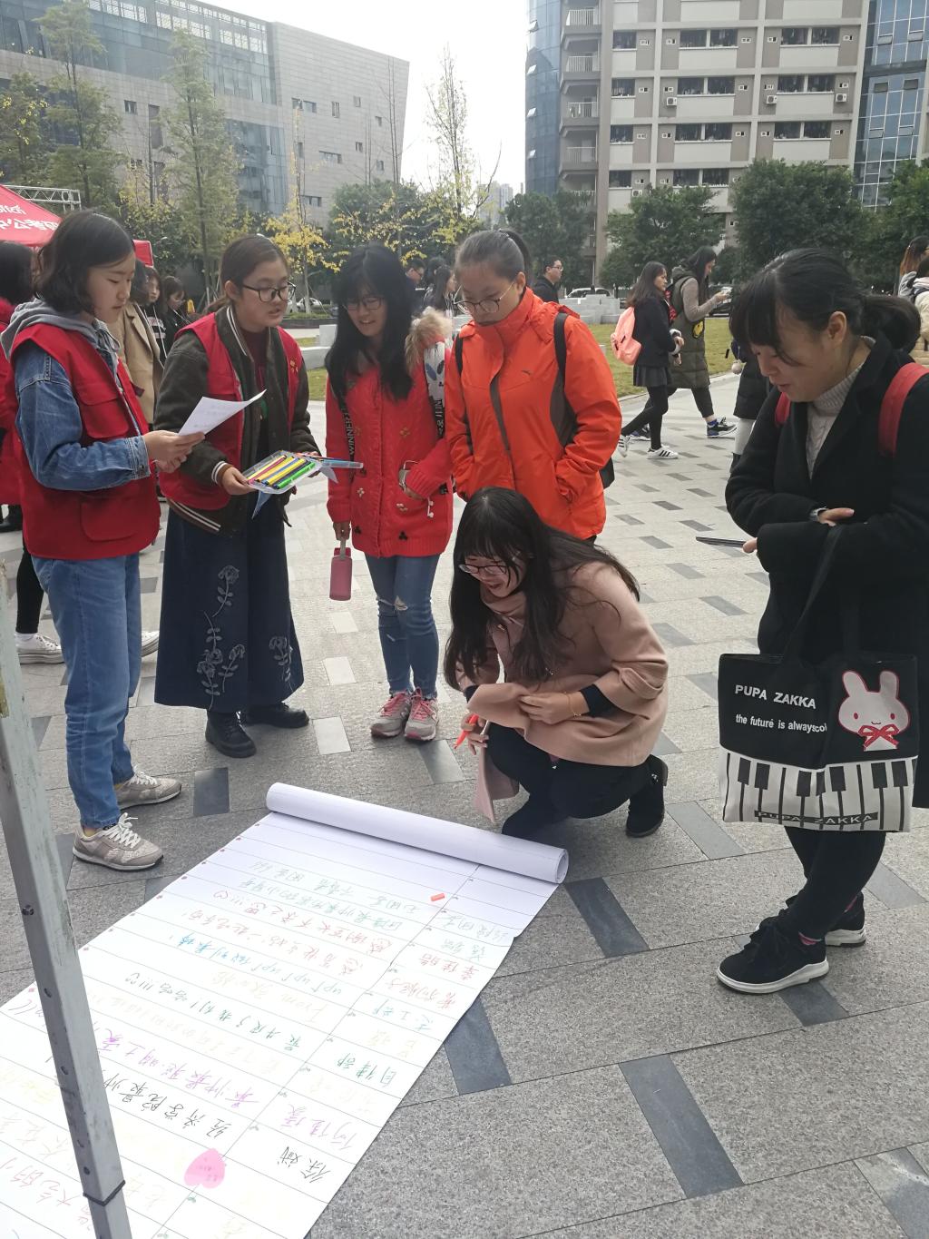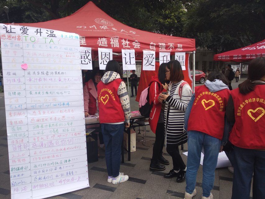 中午,太阳集团团委志工部的11位成员在食堂小广场举办了“让爱升温,传递感恩”的感恩活动。此次活动通过丰富的线上线下表白的形式展开,使同学们得到了一次“知恩、感恩、施恩”的深刻教育,引导同学们对人好、对学校好、对社会好,以奉献社会为终身追求,贯彻了习近平总书记要求大家牢记并积极践行的“中国青年新一代应该有理想、有担当”的理念。活动最后,宣传板上贴满了满满的祝福语和感恩语,不仅增强了同学们的感恩意识,也提高了同学们的综合素质,使大家更深刻的认识到感恩的意义所在。