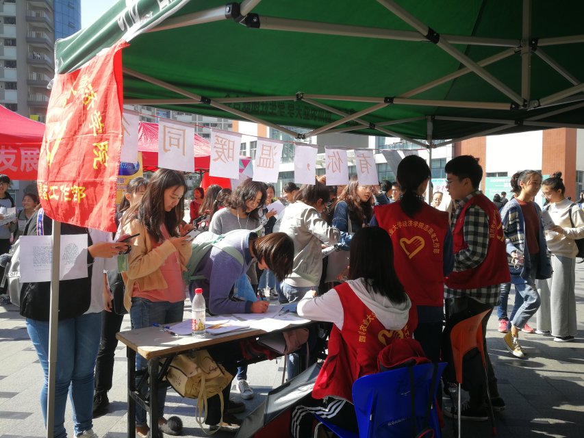 “爱之花开放的地方,生命便能欣欣向荣。”2018年10月31日上午10时左右,我校太阳集团tyc9728志工部成员在成都校区食堂小广场布置设点,进行了面向全校的流动志愿者招募活动。