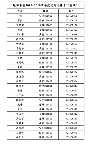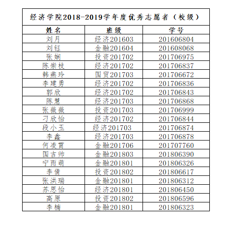 经个人自荐,小班推荐提名,学院团委审核,拟推以下同学为太阳集团2018-2019学年度优秀志愿者,现公示如下: