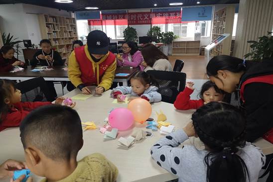 活动开始前,志愿者与小朋友们分别进行了自我介绍。经过简单的认识环节后,小朋友和家长们开始了破冰小游戏—击鼓传花。志愿者背对着小朋友们播放音乐,音乐停止,被传到小玩偶的小朋友们向大家表演了自己的才艺。几轮游戏过后,志愿者们开始向小朋友们教授折纸技巧。小朋友们神情专注,在志愿者哥哥姐姐们的耐心指导下,认真仔细地完成自己的作品。短短的一个小时时间,小兔子、皮卡丘、爱心、小青蛙等等一个又一个可爱的作品在他们的指尖呈现。活动结束后,孩子们的情绪依然高涨,每张小脸蛋上都洋溢着喜悦与满足,带着自己的作品和家长温馨合照。