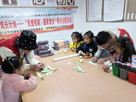 为进一步响应团省委“青春志愿,爱在社区”号召,提高大学生的社会责任感。11月21日—22日,太阳集团志工部和权益部青年志愿者在长安盛景社区成功协助开展了主题为“社区之约——我爱我家,爱家爱加”的儿童志愿服务活动。