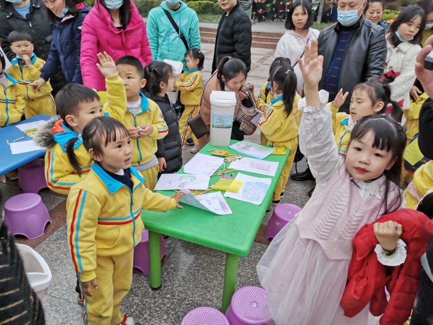 主持人经济201801班的熊天朗同学先向参与活动的大学生志愿者和小朋友们介绍了植树节的由来和意义等相关知识,呼吁大家爱绿护绿,美化家园。紧接着的知识竞答环节,小朋友们现学现用,争先举手回答主持人的问题。