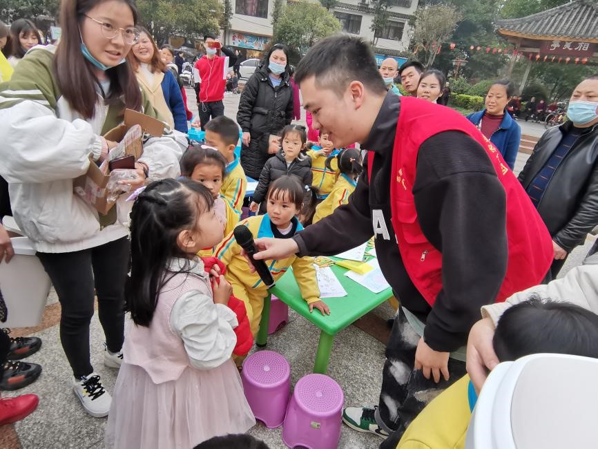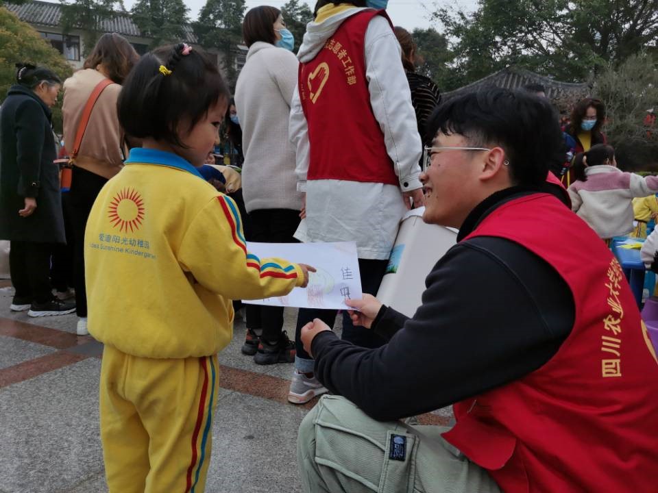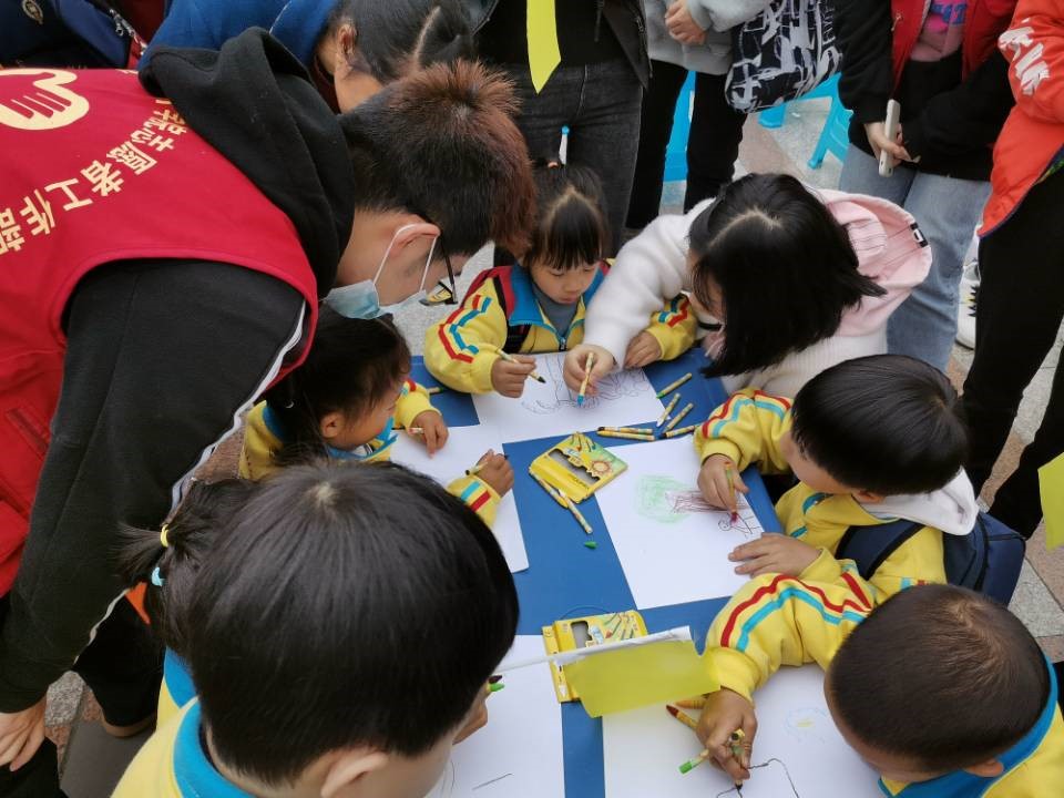 在垃圾分类有奖竞答、积分投“篮”等一系列垃圾分类活动的互动环节以后,在下午3点左右开启了植树节活动,考虑到小朋友的安全以及场地的不方便,此次植树节不同于大家认知的植树日那样需要亲自动手植树,我们采取纸质版的绘画形式,由大学生和小朋友共同完成一幅“我心目中的树”的绘画。