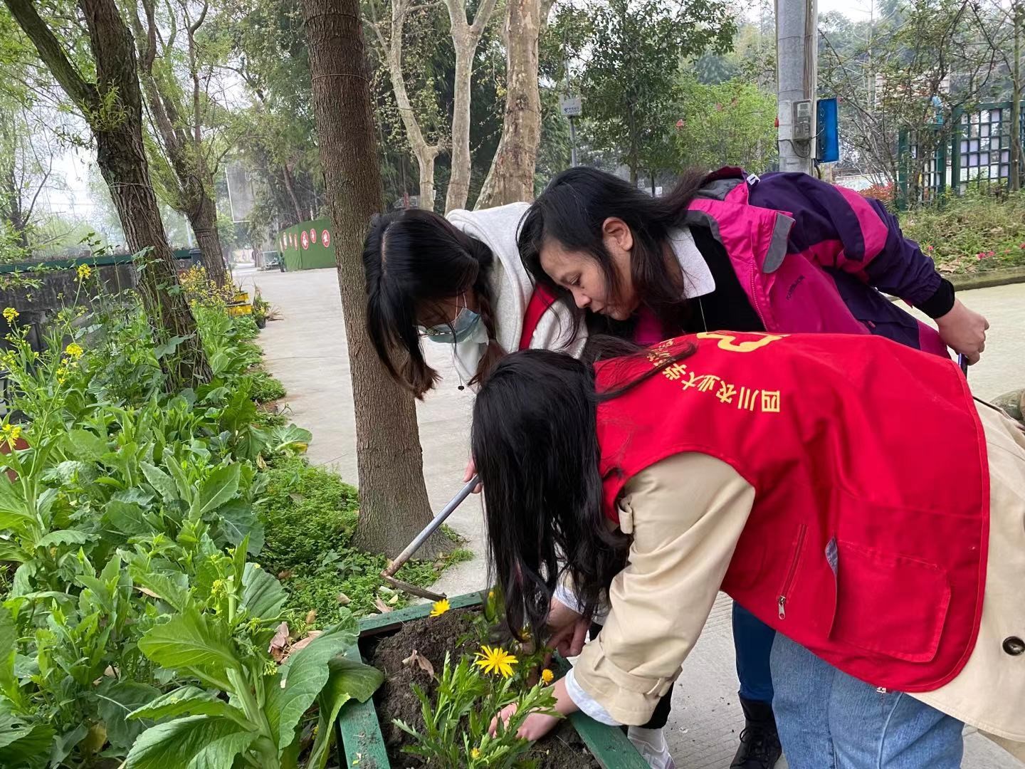 志愿者们个个干劲十足,拿起锄头,扛着铲子,开始清理旧根和杂草,部分旧根根系较大,志愿者们费了九牛二虎之力,合力才将其全部清除。之后,志愿者们分工协作,由一部分志愿者种植新花,再由另外的志愿者进行土壤的补填与平整。经过一个半小时的努力,志愿者们顺利完成工作,修整了旧根,种植了新花,美化了环境。