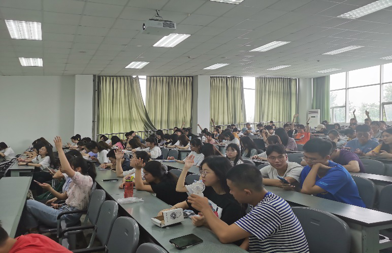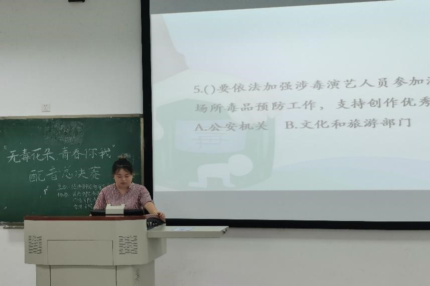 本次活动以问答环节结尾,同学们踊跃举手参与,对于毒品相关知识的问题作出了正确的回答,主持人与台下观众互动感十足。“我觉得禁毒日主题的配音比赛搞得很不错”,志愿者雍玫君同学说:“这样的创新形式也便于大家更好的理解毒品的相关知识。”