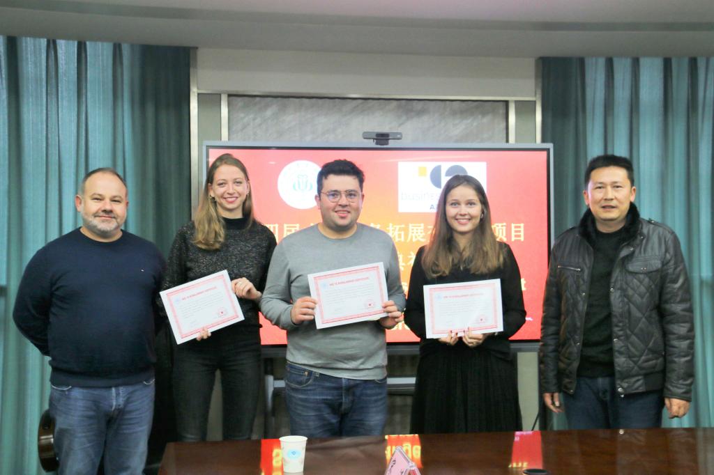 On December 20th, the graduation ceremony of the 4th China Business Development Exchange Student Program of the School of Economics was held in the 305 meeting room of the First Teaching Institute. Professor Gérald Duffing, Dean of the Department of ICN Business School France, Wu Ping, Associate Dean of the School of Economics, Zhou Zhengzheng, International Cooperation and Exchange Office, Shen Qianling, Dean of the Department of International Economics and Trade, Song Tao, Deputy Director of the International Economics and Trade Department, France ICN in China On behalf of Kang Yuyang and others, 18 French exchange students and 4 Chinese 4+1 students attended the ceremony. The graduation ceremony was hosted by Song Tao.
