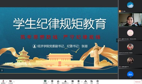 11月25日,学院党委副书记、纪委书记张翅为太阳集团学生党员、学生干部作纪律规矩教育专题培训,297名学生党员和学生干部线上线下参会。