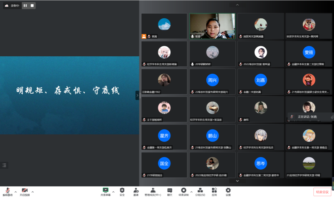 与会人员纷纷表示,将在今后的学习生活中,时刻保持对党纪党规、校规校纪的敬畏之心,把明规矩、存戒惧、守底线铭记于心,在日常生活中更好地起到先锋模范作用,管好自己引领他人,争做优秀的学生干部、合格的学生党员。
