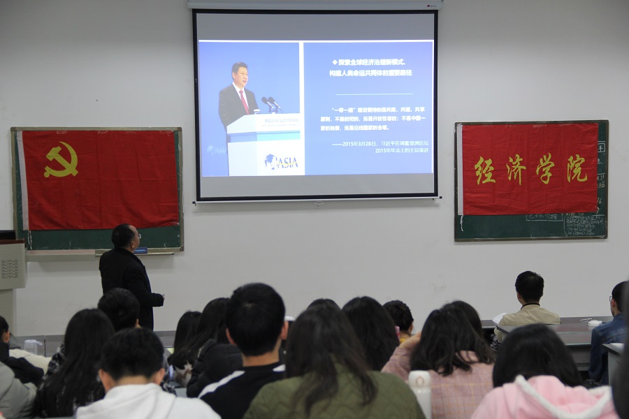 “2013年9月,习近平总书记提出陆上丝绸之路,10月份又提出了海上丝绸之路。“李阳明副教授以习近平总书记讲话为切入点,详细地阐述了‘一带一路’的历史来源与现代发展。“当今中国的发展还存在问题,受着欧美等国的牵制,而‘一带一路’正是中国摆脱这种困境的必须之路,就像给大鹏插上两只翅膀,使之飞得更高更远。”他强调,广大学生党员、入党积极分子要深刻了解“一带一路”,尤其是国贸专业的同学要努力成为“一带一路”建设需要的人才,争当合格的共产党员,报效祖国。