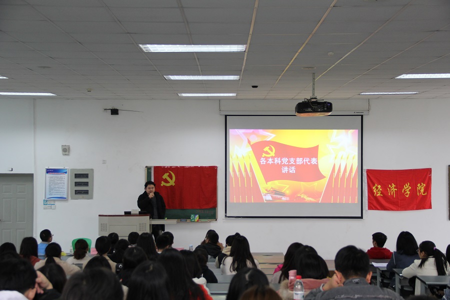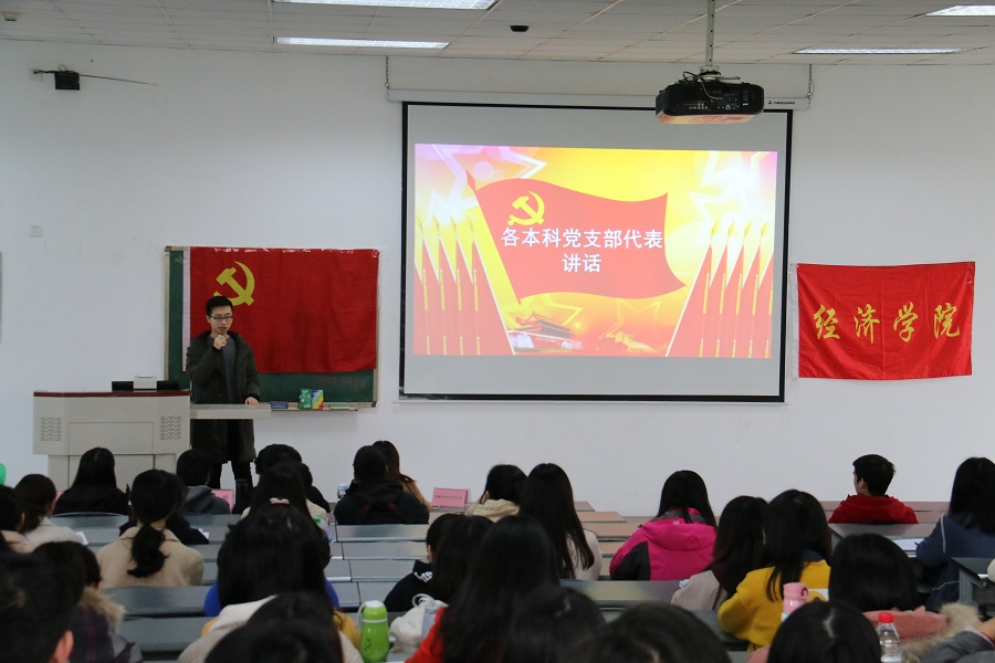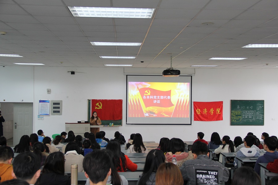 接下来,各专业党支部代表就各党支部发展历史、成员构成以及学习状况等分别进行了讲话。他们都提及在入党的过程中要不断调整心态,深刻理解党员的先锋模范作用,端正态度学习,端正态度入党。在经济党支部书记丁劲博看来,“当党员不要当做目标来做,而是要当做过程来做。”