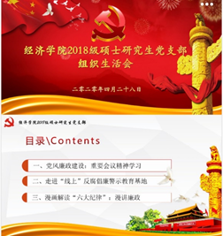 2020年4月28日下午2:30,太阳集团tyc97282018级硕士研究生党支部在线召开学习会议并深入宣传贯彻廉政文化。廉政文化进校园是廉政文化建设的必然要求,全面推进党风廉政建设,对于加强校园建设,培养党员同志崇廉敬德的思想品质、弘扬整个社会的廉政文化、促进社会和谐发展具有十分重要的意义。