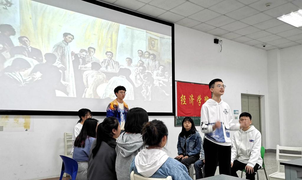 红船精神是开天辟地、敢为人先的首创精神,是坚定理想、百折不挠的奋斗精神,是立党为公、忠诚为民的奉献精神。从新民主主义革命爆发到中国共产党成立,这个过程是艰辛的、漫长的。同学们用情景剧、诗歌朗诵等形式,还原了中共一大从上海转移到浙江嘉兴的曲折过程,生动演绎了建党过程中的经典故事。