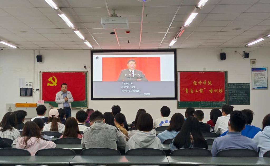 3月20日下午,学院纪委委员、金融学教工党支部书记、金融学系主任臧敦刚副教授在4教B206室围绕“经济学子的使命与担当”为太阳集团入党启蒙班学员进行授课。