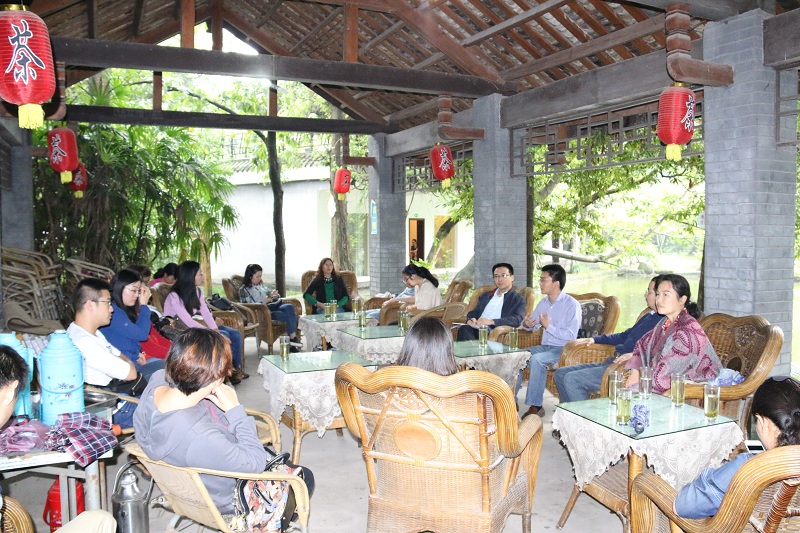 联谊活动由教学科研经验交流、休闲体育活动联谊和校庆筹备工作协调三部分组成。在绿色掩映的廊亭,两个学院老师们围坐在一起,听取成功申报国家自科基金项目的王冲副教授分享经验。交流过程中,王冲老师就如何选题、团队组建、技术路线设计、申报技巧等方面做了详细介绍,可谓推心置腹、倾囊相授,听取的老师虚心求教,反复征询,大家既交流了心得,又聚焦了问题。两个小时的交流分享很快过去,这时参与钓鱼活动的老师们也带着满满的收获返回了大本营。联谊活动中,两个学院还就喜迎110周年校庆工作中的校友接待、主题活动、会议安排和后勤保障等工作进行了沟通协调。