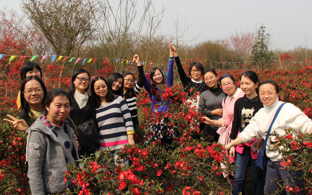 为庆祝“三八”国际劳动妇女节,学院工会组织女教师到中国非物质文化遗产川派盆景的传承基地的都江堰市安龙镇观赏海棠花,参加学校工会组织的集体跳绳比赛、排球投筐比赛和运沙包投篮比赛。