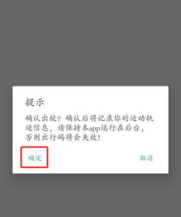 Leave the campus: when you leave the campus after you get the leaving code, click "确定(confirm)"to leave the school button, you will see the following prompt message.