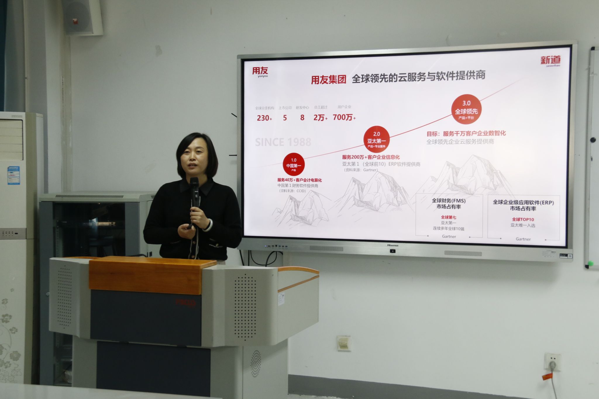 新道科技西南区总经理侯爱华以《数智赋能、融合创新助推高质量人才培养》为主题开展讲座和案例分享。侯爱华讲到新一代技术深度融入社会发展全过程,也在融入教育全过程。数智融合驱动的专业创新与人才培养升级,成为经济学科数智化转型的关键标志。因此校企之间需要更加紧密协同,立足真实的产业实践和场景,瞄准企业商业创新价值链,培养更多能够用数据洞察并解决问题的复合型人才。